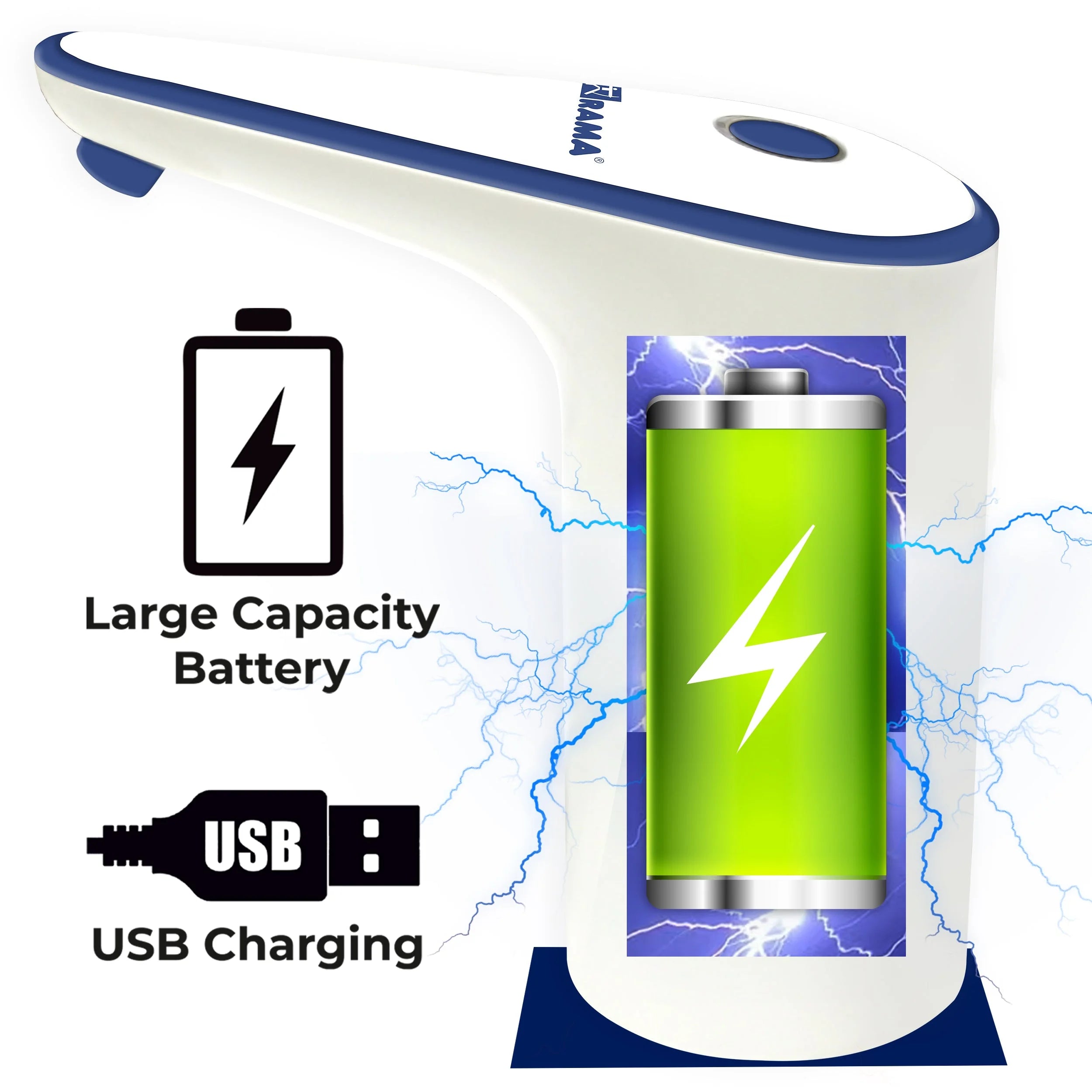 வாட்டர் கேன்களுக்கான RAMA HandyPump வாட்டர் டிஸ்பென்சர், 1200 mAh பேட்டரியுடன் வருகிறது, இது ஒரு முறை சார்ஜில் 3 நாட்கள் உபயோகத்தை வழங்குகிறது, 60 வினாடிகளில் ஆட்டோ ஸ்டாப், வெள்ளை நிறம்