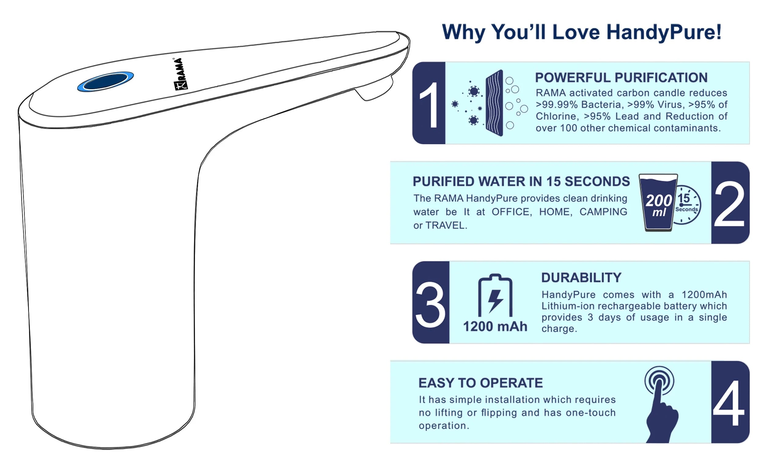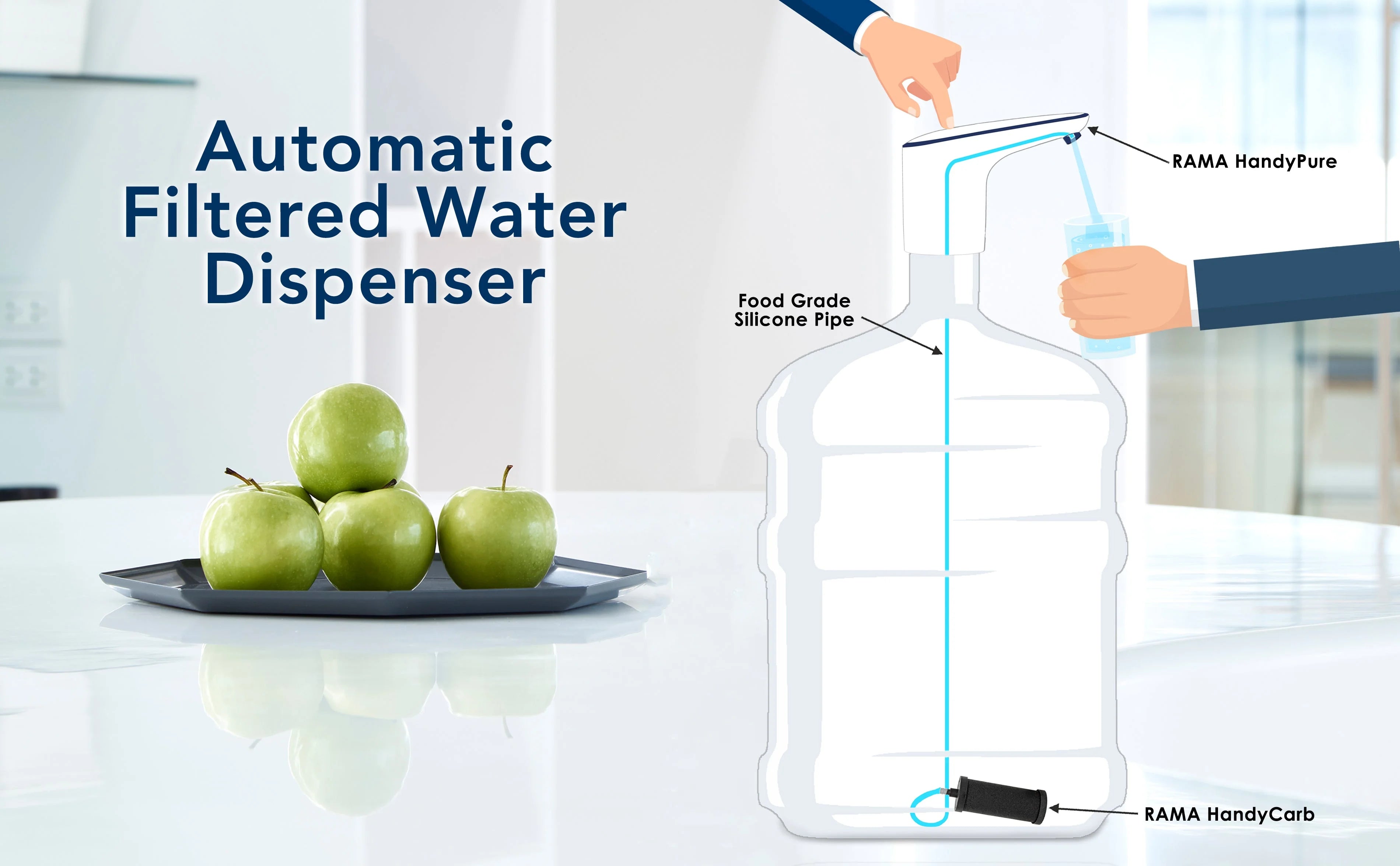 Introducing the RAMA HandyPump water dispenser pump from RAMA, Easy to dispense drinking water directly from your bubble top can, without having to lift the heavy can. This water pump can auto-stop in 60 Seconds. HandyPump can be used at home, schools, offices, and outdoor events.